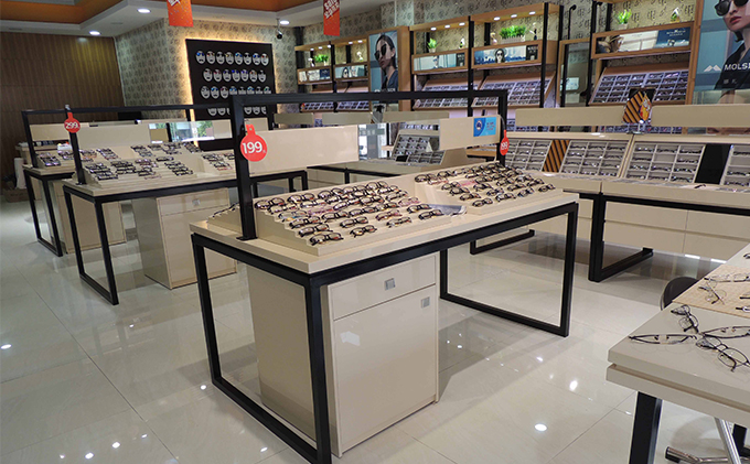功能用途:眼鏡展柜、眼鏡柜臺、快時尚眼鏡展柜、自選中島、收銀臺、眼鏡櫥窗柜、烤漆柜臺