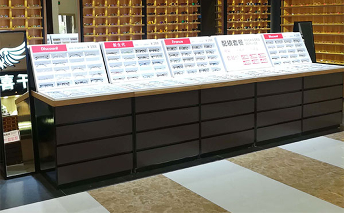 眼鏡自選中島下部,可以定制抽屜,增大上貨量,滿足小眼鏡店的需求。